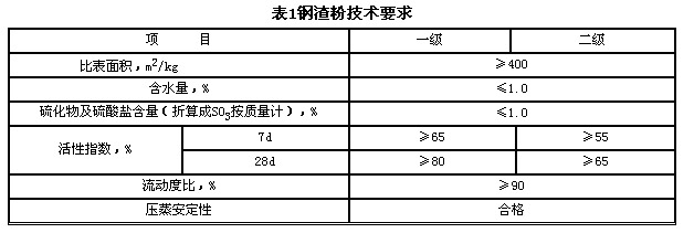 鋼渣粉技術要求應符合表1的規定。