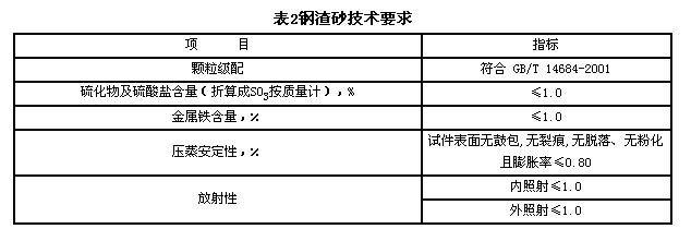 5.2 鋼渣砂技術要求應符合表2的規定。