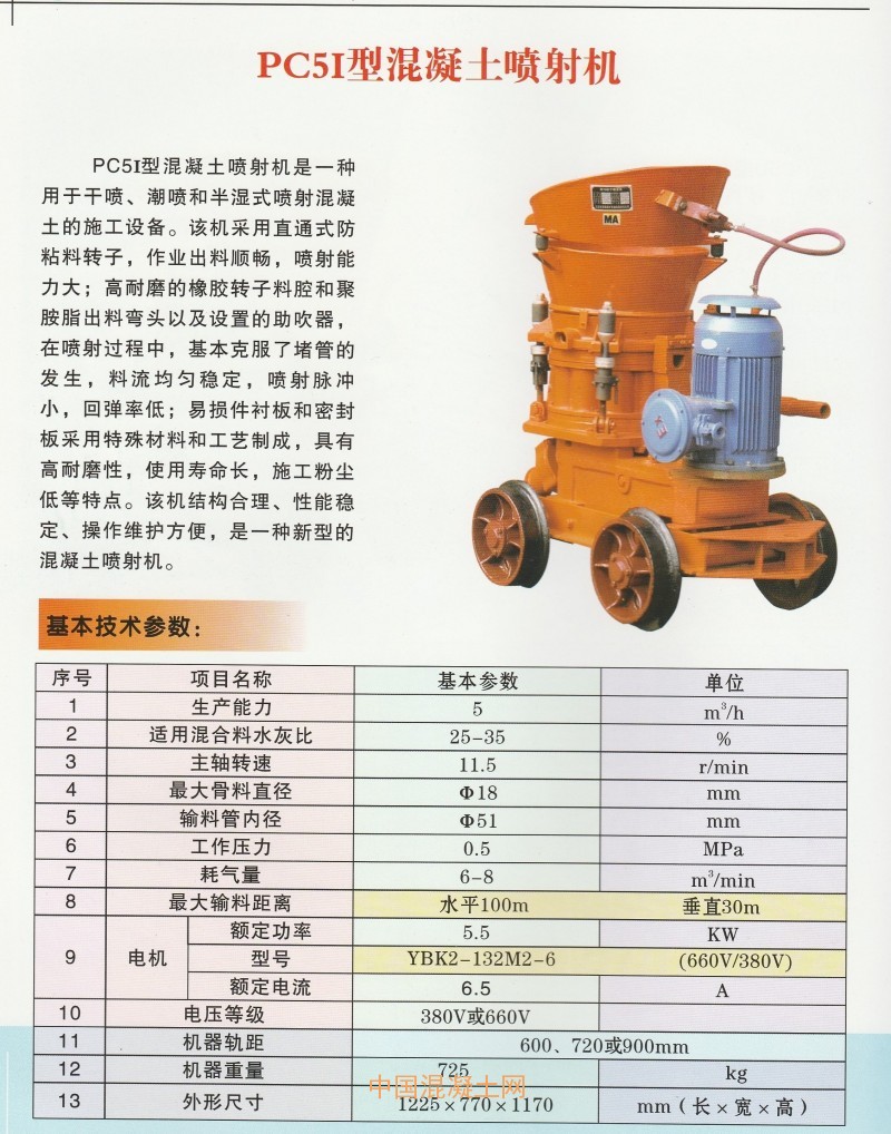 隧道礦井掘進(jìn)支護(hù)噴漿設(shè)備混凝土噴射機(jī),型號(hào)P5U型和P5I型,每小時(shí)噴射混凝土5立方。設(shè)備體積小,重量輕,回彈率低。