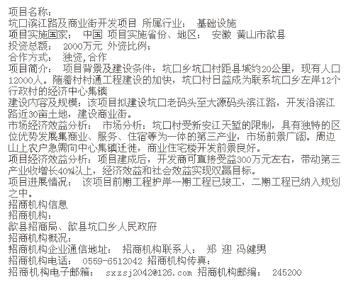 安徽坑口濱江路及商業(yè)街開發(fā)項(xiàng)目