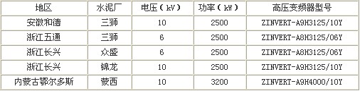 ZINVERT系列高壓變頻器目前已在多條5000t/d旋窯生產(chǎn)線的高溫風機得到實際應(yīng)用,下表是ZINVERT系列高壓變頻器5000t/d生產(chǎn)線高溫風機變頻改造投產(chǎn)業(yè)績表。