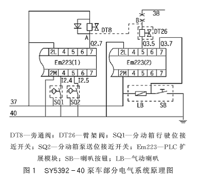 三一重工的SY5392-40泵車采用了西門子公司的S7-200系列PLC 控制系統,由1個CPU224和2個EM223擴展模塊組成。