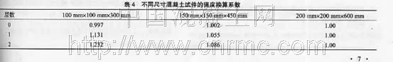 若以200 mm×200 mm×600 mm試件為標準,其他約束形式與其相同的試件強度與其強度之比為強度換算系數,則得各試件抗壓強度的換算系數如表4所示。