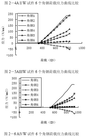 外包鋼法加固AⅠ、AⅡ、AⅢ、AⅣ、AⅤ試件后,外包角鋼的應力-荷載曲線圖見圖2-3 到圖2-6,試件均在80%極限荷載狀態下進行外包鋼法加固。