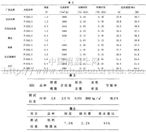 表3、表4、表5 分別是試驗所用砂、石、粉煤灰的有關參數。