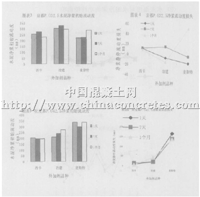 (3)水泥出磨時間對水泥凈漿流動性能影響針對京都P.O32.5 和拉法基P.O42.5 兩種水泥,分別測試