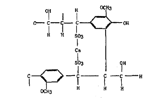 木質素磺酸鹽,同木質素一樣,基本組分是苯甲基丙烷衍生物,磺酸基團決定了其具有較好的水溶性,可溶于各種不同pH的水溶液,但不溶于乙醇、丙酮等有機溶劑。典型的針葉木木質素磺酸鹽可用下列化學式C9H8.5O2.5(OCH3)0.55(SO3H)0.4表示,分子結構單元如圖1.2所示。