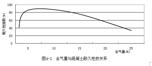 米倫茲(Mielenz)和鮑威爾斯(Powers)等認為,要使混凝土的抗凍融性能良好,氣泡間隔系數L值最好控制在100-200μm以下。實驗表明,混凝土的含氣量與凍融性能密切相關。