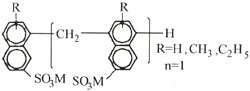 萘系( Naphthalin ),三聚氰胺系( Melamine ),氨基磺酸系( Aminosulfonic acid ),多羧酸系( polycarboxylic acid )。其化學結構式分別如下: 萘系 萘磺酸鹽甲醛縮合物