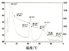 4 . 2 SR 改性混凝土試樣早期熱形成機理分析 SDT2960 型 DSC-TGA 熱分析儀,溫度參數為:室溫~ 1000 ℃ ,升溫速率: 10 ℃ /min ,空氣為載氣,實驗結果見圖 6 。