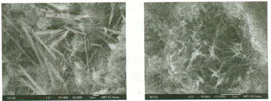 5 . 2 實驗結果與討論 從圖 7 可見: SR 改性后,混凝土 7 天齡期形貌結構變的更加致密。改性前試樣中的水化產物,針、柱狀鈣礬石發育不是很好,相互搭接不夠緊密呈松散分布,沒有和 C-S-H(C x SH x - 0.5 ) 凝膠形成密集體,有少量的孔洞,還有一定量的片狀 Ca(OH) 2 呈零星分散。改性后,試樣齡期水化產物中,柱狀的鈣礬石和 C-S-H(C x SH x - 0.5 ) 一定程度上變得緊密;和 C-S-H(C x SH x - 0.5 ) 凝膠形成簇狀密集體,相互搭接后有被 C-S-H(C x SH x - 0.5 ) 凝膠包裹在里的趨勢,形成了類似鋼筋混凝土結構的趨勢,互為連生,交叉,且孔隙變小,毛細孔徑變小,凝膠與鈣礬石緊密交織,孔隙比較規整,表面趨于平滑,六方柱狀的水化鋁酸鈣及粒子聚集的云霧狀 C-S-H 凝膠相互交織,互相搭接,出現了類似于石狀紋理的結構體,是水泥石結構緊密的原因。致使抗壓強度明顯高于 7 天混凝土基準試樣,強度物理實驗也證實了這個結論。