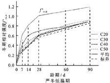 R -7 ——受檢負溫混凝土負溫養(yǎng)護 7d 的抗壓強度與基準混凝土標養(yǎng) 28d 抗壓強度之比,單位為百分數 ( % ) ;