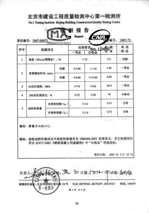 4、本產品對普通硅酸鹽水泥效果最佳,如用其它水泥應做好試配試驗。