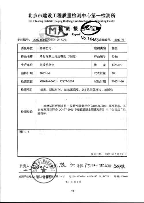 1、各種速凝劑對水泥都存在適應性問題,使用前,必須對施工用的水泥進行適應性試驗,確定最佳摻量。