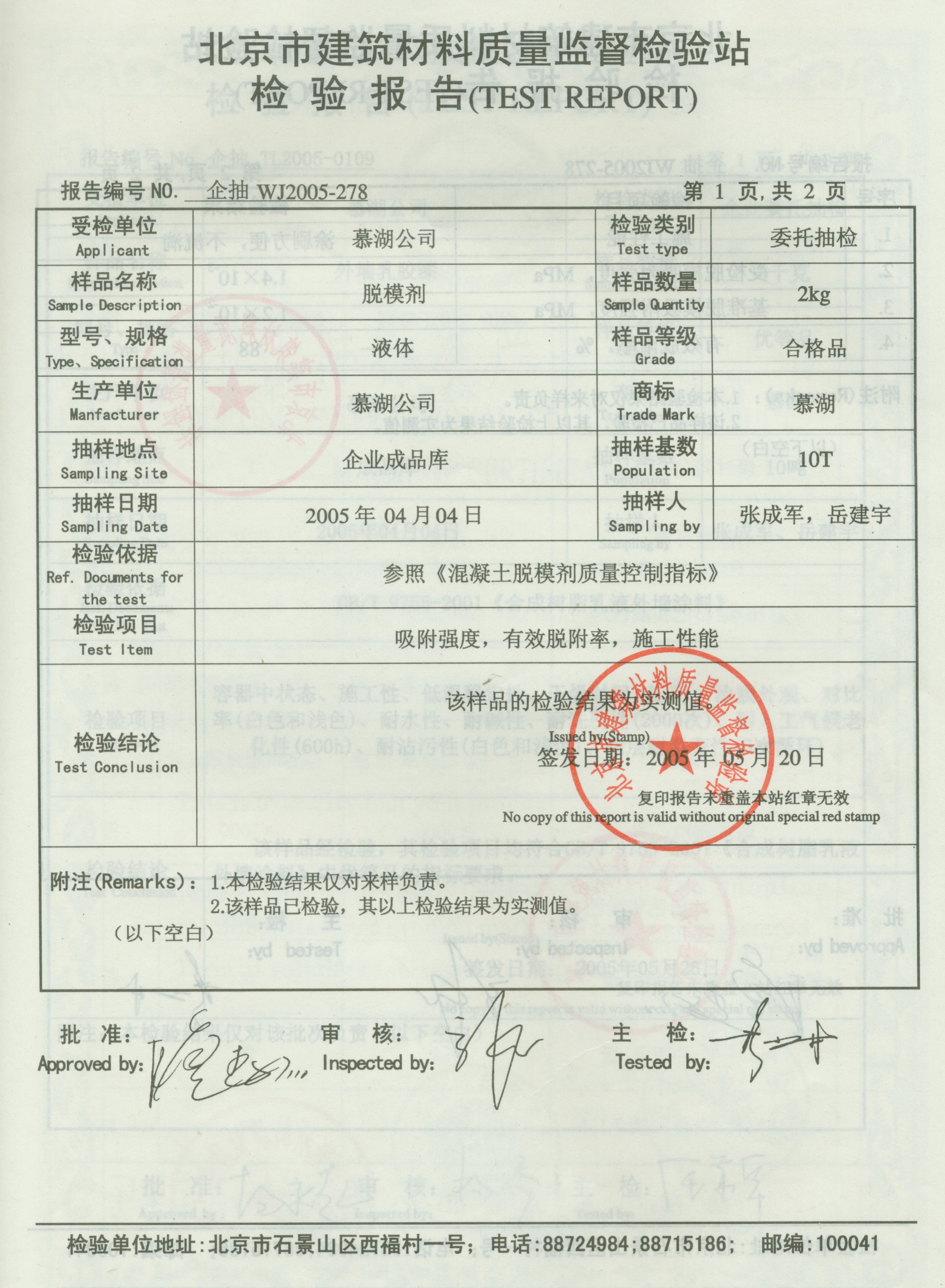 1、脫模效果好,脫模后能保持砼制品的本色,并能夠減少氣泡,而且對氣孔、氣泡有掩蓋作用,使砼受隔離面光潔美觀。2、對砼表面和模具及鋼筋無腐蝕、無污染,不影響砼與鋼筋的握裹力。3、脫模后,模板上灰塵少、無積垢,清理模具快捷輕松,模板上不留殘跡。對金屬模具有防銹功能,并有清潔模具之作用。尤其是對已積垢的軌枕模具等,使用該產品后,能夠逐步清除積垢,恢復模具原有的光潔度,減少清模投入,延長模具使用壽命。4、產品宜長期室內密封保存,不分層、不變質,保質期5年。用量:20m2/kg。總之,我廠脫模劑經用戶使用后,深有感觸的說:“慕湖的產品,不用不知道,一用的確好。”