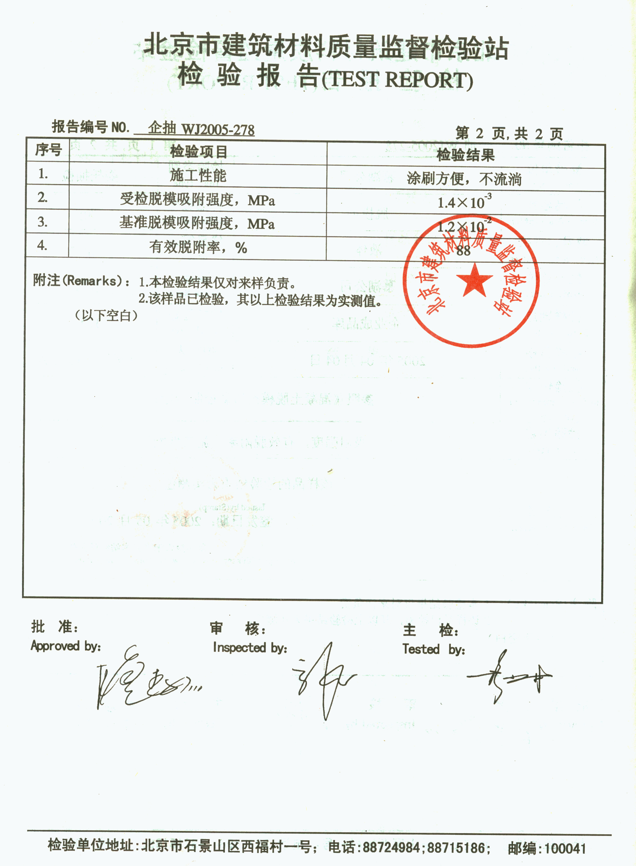 a 脫模劑在室內使用時,耐水性能可不檢。 | ||