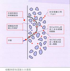 B . 1 在硅酸鹽類水泥砂漿或混凝土中摻加一定量的抗硫酸鹽類侵蝕防腐劑,能抵抗環境中一定濃度的 SO 、 Cl — 、 HCO 、 CO 2 、 NH 、 Mg 2 + ,以及其他鹽類、泛酸類的地下水、地表水、海水、污水和含鹽土壤、可溶巖鹽等侵蝕性物質對砂漿或混凝土的侵蝕。 B . 2 在硅酸鹽類水泥砂漿或混凝土中摻加一定量的抗硫酸鹽類侵蝕防腐劑,可用于受環境侵蝕的海港、水利、污水、地下、隧道、引水、道路、橋梁、工業和民用建筑基礎等工程。