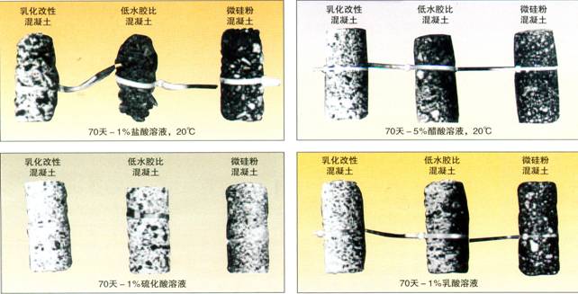 3、結果與分析 摻FFS型抗侵蝕防腐劑的混凝土,拌水后能將水泥水化析出大量的氫氧化鈣、高堿性鋁酸鈣等不穩定或亞穩狀態物質轉變成穩定的,有利于均質、密實、對強度起貢獻作用的水泥石結構。這種化學和物理的綜合作用,起到了抵抗環境侵蝕性物質對混凝土侵蝕的作用,避免了由硫酸等介質對混凝土的破壞。從試驗結果可見,不摻和摻FFS型抗侵蝕防腐劑的混凝土強度、抗侵蝕系數以及在工程中的使用結果,也都表明摻用FFS型抗侵蝕防腐劑的混凝土具有較好的抗侵蝕和耐久性能。 4、結語 該工程交工投產后,對其質量進行的驗收,以及投產使用后的現場考察表明,摻用FFS型抗侵蝕防腐劑的混凝土廠房,在與硫酸蒸氣或空氣侵蝕環境中含有侵蝕性介質作用下,混凝土棱角、表層平整度都完好如初,未見有受腐蝕的跡象,其主要原因如下。 (1)摻入FFS型抗侵蝕防腐劑的混凝土,可將水泥水化析出大量的氫氧化鈣、高堿性鋁酸鈣等不穩定或亞穩狀態物質轉變成穩定的,有利于均質、密實、對強度起貢獻作用的水泥石結構。這種化學和物理的作用,是提高混凝土抗侵蝕、耐久性的有效措施。 (2)摻入FFS型抗侵蝕防腐劑可補償混凝土收縮,減少裂紋和降低孔隙率,阻止侵蝕性物質的滲入、擴散或滲透。同時,又可以起到保護鋼筋防止銹蝕的作用。 (3)摻入6%~8%FFS型抗侵蝕防腐劑的混凝土抗侵蝕性能大大提高,抗侵蝕系數大于0.90,可抵抗強侵蝕。工程使用三年后,該電解銅廠第三期擴建工程仍采用摻FFS型抗侵蝕防腐劑來解決腐蝕問題;從該工程使用效果以及在污水處理工程的實例證明,摻入FFS型抗侵蝕防腐劑可制備具有高性能、抗侵蝕、自防水的耐久性混凝土。