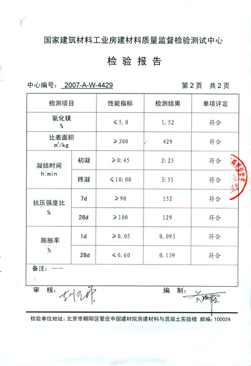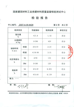 6 . 5 試驗報告 出廠試驗報告內容應包括本標準規定的出廠檢驗項目。 生產廠應在產品發出之日起 12d 內寄發出廠檢驗報告: 28d 強度、 28d 膨脹率應在產品發出之日起 32d 內補報。 抗蝕系數、膨脹系數、堿含量、氯離子含量為型式檢驗結果,由供需雙方協商,自檢驗之日起 40d 內補報。