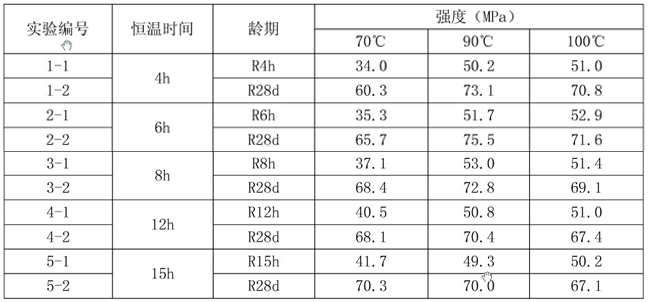 設計選用強度等級為C60。恒溫溫度為70℃、90℃、100℃,恒溫時間設定為4h、6h、8h、12h、15h降溫1h。