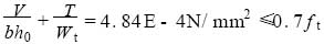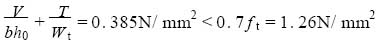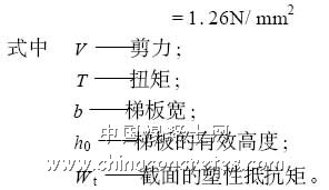 為了便于比較,將兩種方法得到的撓度、支座反力、彎矩和扭矩列于表3。通過比較可知,就實用計算方法而言,最大撓度偏小,根據統計結果,可以對其乘以一個增大系數1. 35 ;固定端的支反力偏小,簡支端的支反力偏大,但誤差不大;扭矩和彎矩均偏大,但偏值不多。為了能說明實用計算方法是否可行,取厚度為120 mm 的梯板進行承載力分析。由上表看出,梯板為彎剪扭構件,彎矩比有限元法略大,因此僅考慮剪扭情況。為安全起見,設環境類別為二類b ,即保護層厚度為20 mm。由