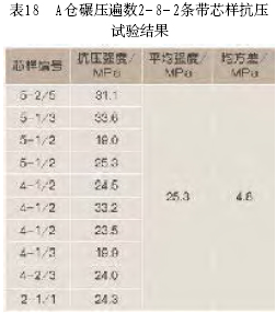A號倉芯樣抗壓強度匯總表(表21)。