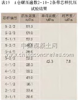 A倉碾壓遍數2-10-2條帶芯樣抗壓試驗結果(表19)。