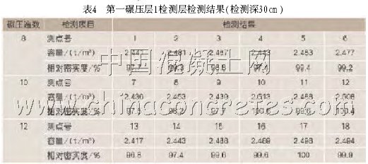 第一碾壓層1檢測層檢測結果(檢測深30cm)(表4)。