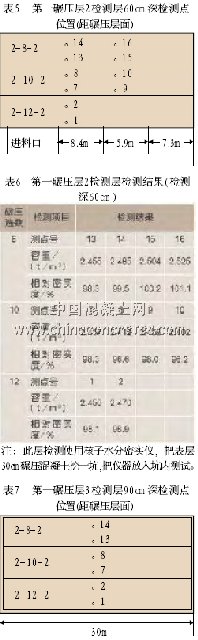 第一碾壓層3檢測層90cm深檢測點位置(距碾壓層面)(表7)。