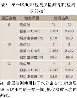 (5) 現場試驗檢測儀器核子水分密度儀,檢測深為30cm,為檢測60cm、90cm深,現場采取挖坑下臥檢測,由于挖坑對已碾壓的混凝土有一定擾動,對碾壓混凝土質量有一定影響。