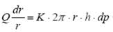 達西公式要求孔隙平行不發生橫向滲透,對于混凝土這種內部孔結構復雜且不斷變化的材料是做不到的,但目前國內外學者認為達西定律對于水泥混凝土還是適用的,對圓環形試件我們假設僅發生徑向滲透,對式(1)作微分得式(2)