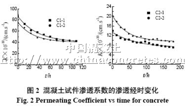(2.) 混凝土的滲透系數隨滲透時間的減小近似呈負指數函數規律。