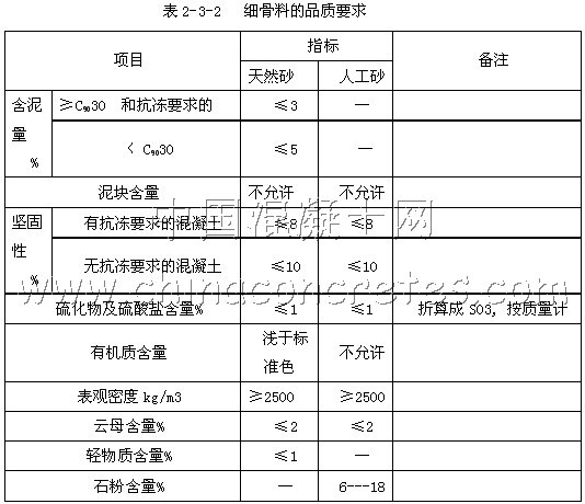 2.3.2 骨料的質(zhì)量要求