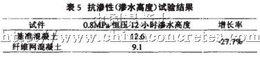 采用滲水高度試驗方法,0.8MPa 恒壓12h,兩種混凝土的滲水高度如表5。
