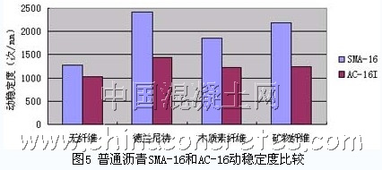 圖5 普通瀝青SMA-16和AC-16動穩(wěn)定度比較