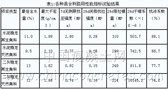 上述研究表明,再生集料完全能滿足作貧混凝土基層和水泥和二灰穩(wěn)定基層使用。