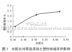 圖3 為水膠比對(duì)泵送混凝土塑性收縮率的影響。
