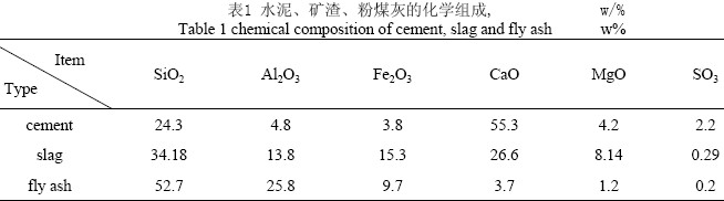 水泥為湖南湘鄉水泥廠生產的P.O.42.5 級水泥。礦渣為江西聯達高新建材廠生產的粒化高爐礦渣粉,密度2.88g/cm3,比表面450m2/kg。 粉煤灰為湖南湘潭電廠生產的風選超細粉煤灰,密度2.45g/cm3,,比表面積600 m2/kg。水泥、礦渣、粉煤灰的化學組成見表1。NaCl為化學純,NaCl溶液采用蒸餾水配制。凈漿成型采用自來水,其它采用蒸餾水。使用的外加劑為復合無機質化學純。