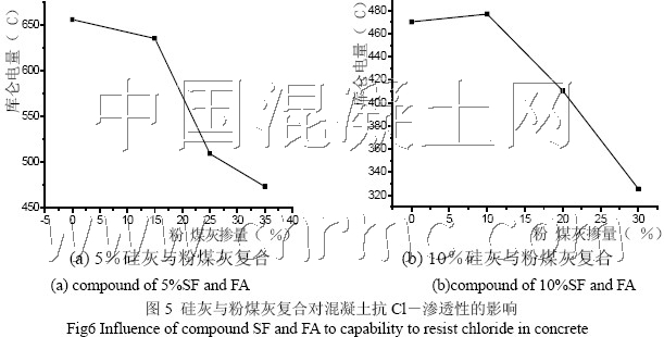 3.硅灰與粉煤灰復合配制的混凝土抗Cl-滲透性能較好, 但是要選擇適量的硅灰與適量的粉煤灰復合,FA與SF雙摻是配制高抗Cl-滲透混凝土的有效途徑之一。