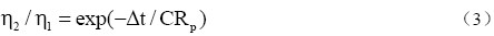 其中η1 和η2 分別為兩個連續時刻t1 和t2 時的電位。當Δt=CRp 時,可得: