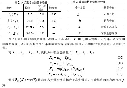 關鍵詞:水泥混凝土路面 可靠度 結構參數 隨機變量
