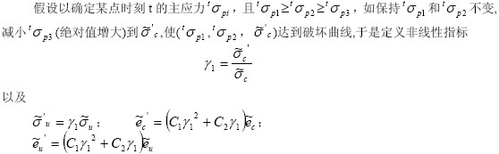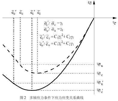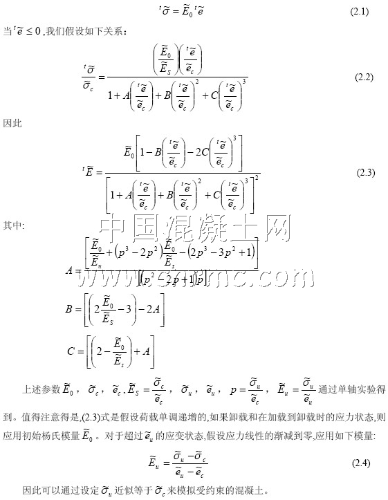 在實際的工程分析上,進行三軸實驗是很難的,于是人們試著用單軸的應力應變曲線的變換形式來表示混凝土在多軸應力狀態下的應力應變關系。Peckhold 和Darwin 以及Ottosen等做出了很大的貢獻,引入了非線性指標以及等效應力應變的概念,借助這個概念我們就可以將單軸的應力應變曲線引申到多軸應力的情況下。