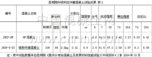 3.1.3 HF混凝土優良的抗裂性能,使HF混凝土的整體性能提高,內部缺陷減少,從而也提高了其抗磨抗空蝕性能和抗高速水流沖刷破壞的性能。