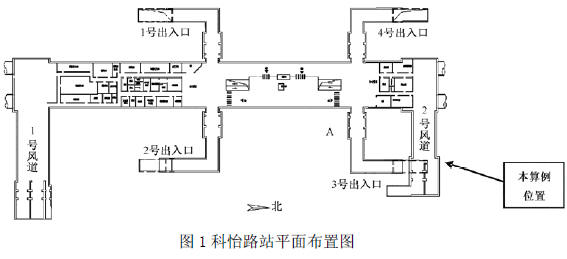 擬建北京地鐵九號線位于北京城西部,呈南北走向,全線均為地下線,全長約16.5km,共設14 座車站。其中科怡路站共設有四個出入口和兩個風道,車站平面布置圖見圖1。結構主體采用明挖順做,基坑開挖最深處約為13m,屬于深基坑開挖。潛水靜止穩定水位標高位于結構底板之下,基坑開挖不考慮基坑降水。3 號出入口和2 號風道位于車站主體東北角,2 號風道距離東側四層樓房約8.9m,距離北側電信出局管線約5.07m,其施工場地北、東兩側較狹窄,南、西兩側較寬闊。
