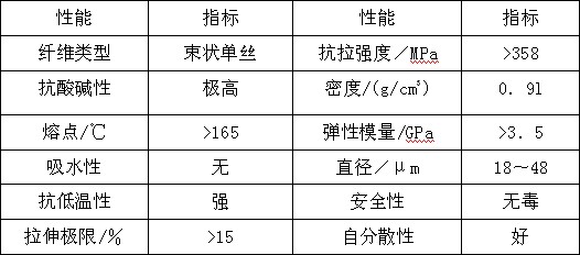 表1聚丙烯纖維的性能指標