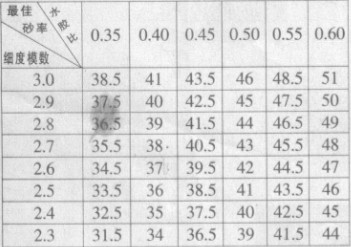 2.在多數情況下,砂的顆粒級配是不符合規定的。若0.60mm以上顆粒超標,則應提高砂率,可按每超標10%,提高砂率1%計算;若0.60mm以下顆粒超標,則應降低砂率,可按每超標10%,降低砂率1%計算。