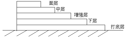 | 適用范圍:一般用于廁浴間、地下室、隧道、水池等防水工程。 工法三:總用料量:3.1㎏/㎡, 厚度:約1.5㎜。 施工工序:打底層→下層→增強層→中層→面層 每層用量:0.4㎏/㎡ 0.9㎏/㎡ 0.9㎏/㎡ 0.9㎏/㎡ 涂層結構: |