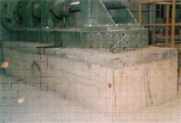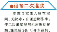圖 3 船型模示意 有效承載面的大小,主要與灌漿結束后表面氣泡量和豎向膨脹率有關。當表面富集大量的氣泡時,就會形成氣泡空穴,極大地降低了有效接觸面;如果膨脹率太小,會導致空鼓,因而要求有比較高的塑性膨脹,在水化的塑性階段就形成密實接觸。因而塑性膨脹對有效接觸面的高低起到至關重要的作用。 1.4 用水量范圍 目前國內的很多灌漿料的用水量范圍都比較窄。為便于澆筑,在施工過程中,往往會增大水料比,這樣會帶來一些負面影響,灌漿料的分層度增大,骨料沉降明顯,在灌漿層的上表面形成漿體的富集區,同下表面相比,膠砂比大了許多,待硬化后,表面水分蒸發,收縮比較大,增大了開裂的趨勢。根據施工現場的溫度和濕度情況, CGM 高性能灌漿料的用水量可以在 3 個百分比范圍內調整,而不會發生離析、泌水現象,極大地方便了施工。 1.5 強 度 2 工程應用 3 結 語