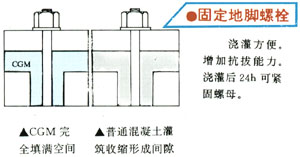CGM 高強無收縮灌漿料的性能 摘要 依據大量的試驗成果,闡明 CGM 高強無收縮灌漿料是一種具有早強、高強、高流態、微膨脹和耐久性好等多種優點的新型復合材料。它是將流態混凝土、早強高強混凝土、膨脹混凝土和外加劑等多種混凝土技術綜合運用。 CGM high-strength non-shrinkage grouting material Abstract : Based on a great of experiment results, high-strength non-shrinkage grouting material is composite material which has many features including early-strength 、 high-strength 、 natural flow, micro-expansion. It is also a technology use of many concrete including natural flow concrete, early-strength and high-strength concrete, expansion concrete, admixture concrete and so on. 為了提高冶金、石化和電力等系統的軋鋼、連鑄、壓縮機、大功率泵和發電機等大型與特大型設備的安裝精度,加快安裝速度和延長設備使用壽命,需要采用流動度大、強度高和具膨脹特性的灌漿材料。這類材料不僅可用于大中型設備的地腳螺栓的錨固、墊板座漿的二次灌漿,也可用于梁柱接頭,工程搶修等具有早強、高強、無收縮和高流態要求的建筑施工。 表 1 產品主要性能