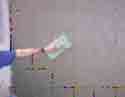1 、配比:本材料 25kg/ 袋,按照水灰比 1:4 調配,該材料只允許加水,不能加任何水泥、沙石或添加劑等。 2 、調配方法:取一只干凈的桶,先加入定量的水,邊倒干粉邊攪拌,用低轉速(每分鐘 1000 轉以下)電動攪拌棒攪拌約 3 ~ 5min 后靜置 2 ~ 3min ,再經二次攪拌后使用。 3 、施工方法:溫度較高或氣候干燥時,必須先潤濕墻面,再涂底層砂漿。使用時用專用工具直接涂于墻面或涂過界面劑的板材上即可。 4 、使用時間:每次調配以 45min 為最佳時效,最長使用時間為 2h 。 5 、注意:( 1 )每次使用后,初凝固化的剩料不可再加水調稀,或與新料共同調配。 ( 2 )環境濕度高于 35 ℃時,施工應設有遮陽設備,以避免材料直接在陽光下暴曬失水。環境溫度低于 4 ℃,不得施工。